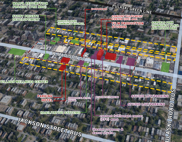 The MOM District is designed to turn a historically underserved corridor into a vibrant, walkable entertainment district for residents, creatives, entrepreneurs, and visitors. Anchored by a high-tech Content Fulfillment Center (CFC), film studios, coworking hubs, and retail, MOM will serve as a full-service platform for independent creators to produce, distribute, and monetize their work locally. With $12.5 million in development funding underway for Phase I, the project emphasizes culture, equity, and long-term community investment, creating over 1,000 jobs and building a sustainable model of growth for Chicago’s West Side.